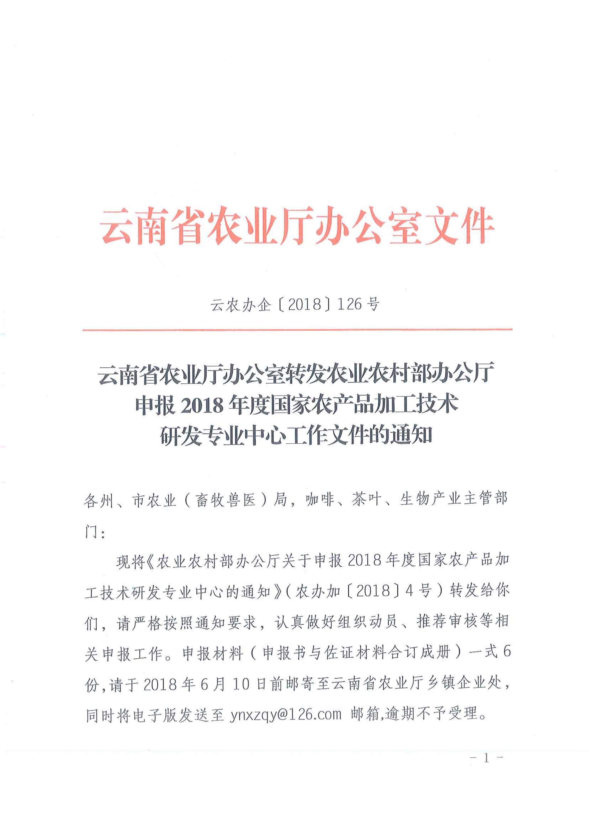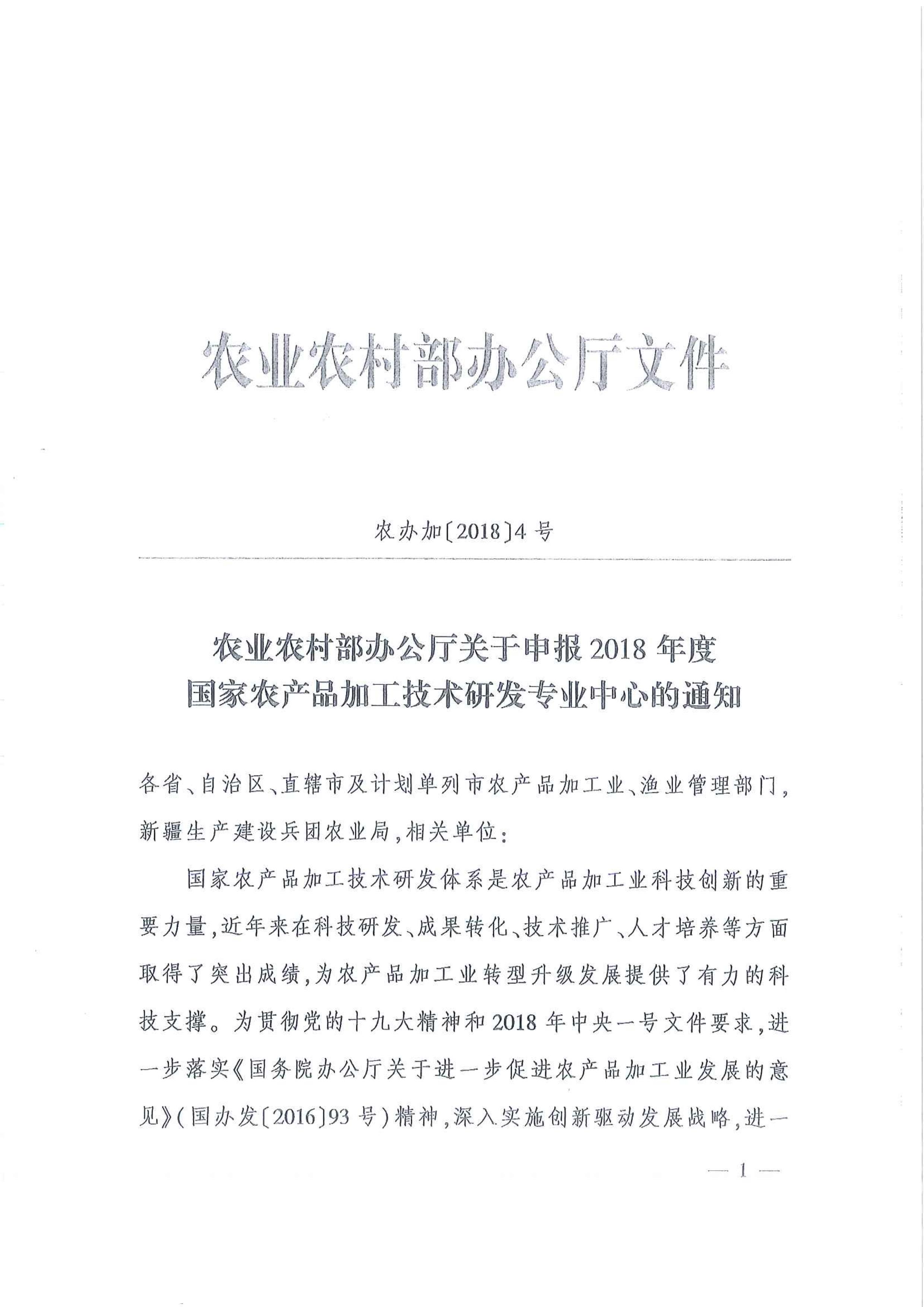 云南省農(nóng)業(yè)廳辦公室轉(zhuǎn)發(fā)農(nóng)業(yè)農(nóng)村部辦公廳申報2018年度國家農(nóng)產(chǎn)品加工技術(shù)研發(fā)專業(yè)中心工作文件的通知