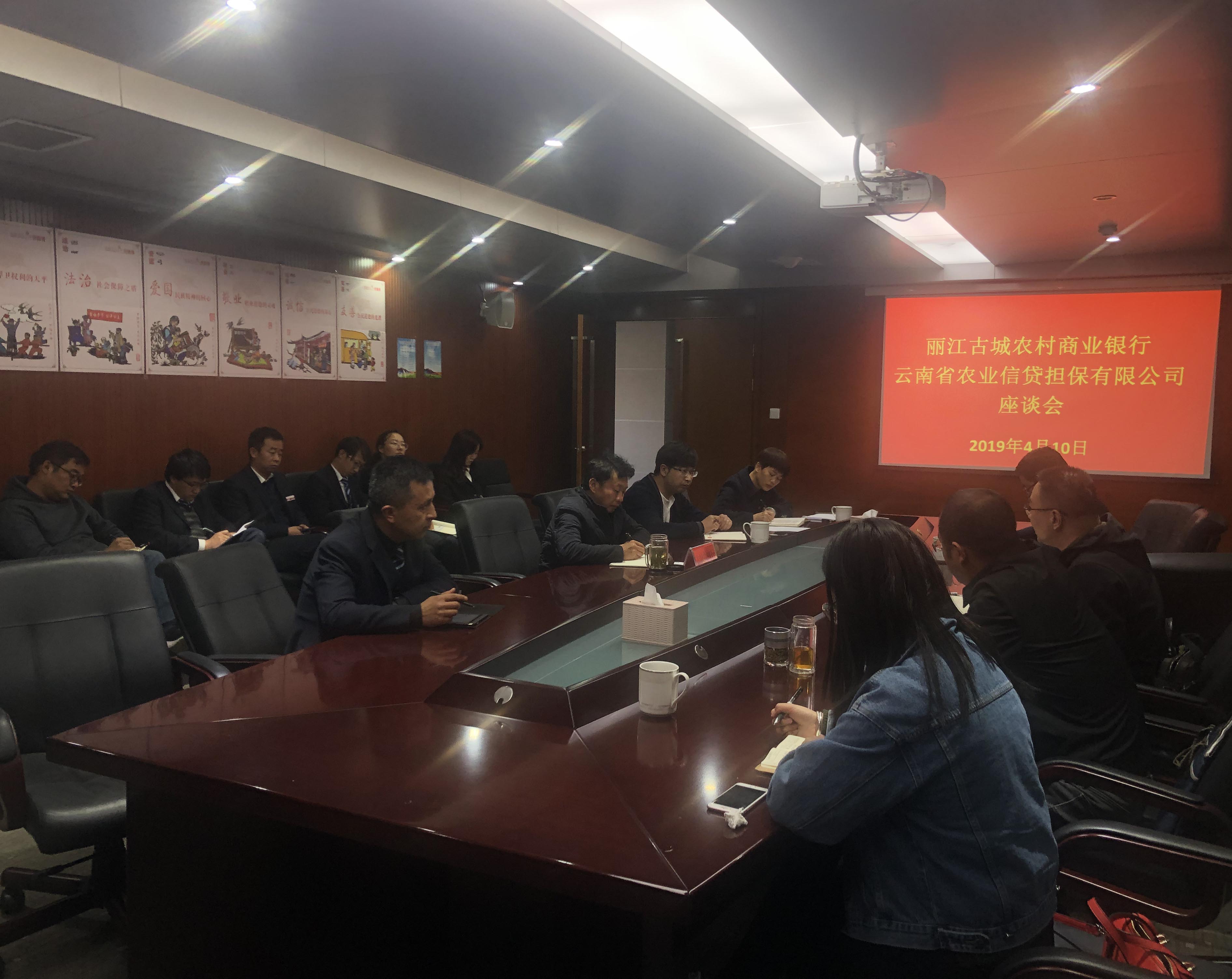 下午與古城農(nóng)商行董事長蔡云波,信貸部總經(jīng)理鄭樹立,及各支行行長開展座談會。農(nóng)商行董事長蔡云波詳細介紹了古城農(nóng)商行的基本情況,指出農(nóng)商行在三農(nóng)有一定的地位優(yōu)勢,涉農(nóng)客戶群體廣,希望雙方加強對接,推進業(yè)務發(fā)展,共同解決三農(nóng)“融資難,融資貴”的問題。副總經(jīng)理廖寅皓向古城農(nóng)商行詳細介紹了公司的基本情況,業(yè)務準入標準及公司現(xiàn)階段業(yè)務發(fā)展情況,表示公司一直以來都重視與農(nóng)信社體系的對接,重視與農(nóng)信社的合作,指出目前麗江辦與古城農(nóng)商行業(yè)務增速較為緩慢,項目數(shù)量相對落后,希望此次座談形成新的共識,在2019年有新突破,新開展,積極推動業(yè)務開展。