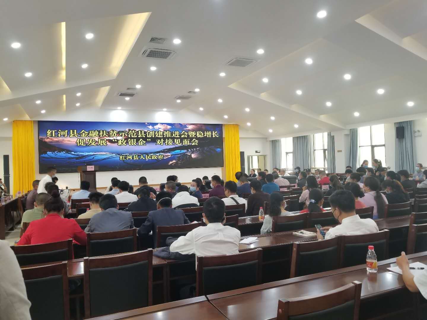 2020年3月11日,紅河辦事處業(yè)務(wù)主管姚燕同志攜項(xiàng)目經(jīng)理范純、周金偉至紅河縣參加由紅河縣人民政府舉辦的紅河縣金融扶貧示范縣創(chuàng)建推薦會(huì)暨穩(wěn)增長(zhǎng)促發(fā)展“政銀企”對(duì)接見(jiàn)面會(huì)。