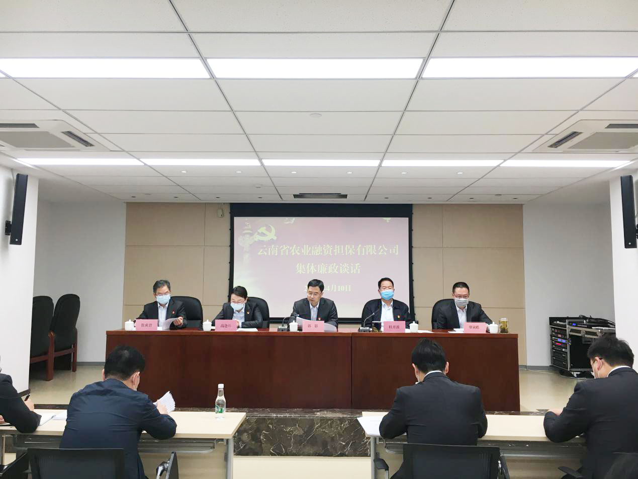 4月10日,云南省農(nóng)業(yè)融資擔(dān)保有限公司利用業(yè)務(wù)推進(jìn)會(huì)之機(jī)開(kāi)展集體廉政談話,并舉行2020年度黨風(fēng)廉政建設(shè)責(zé)任書(shū)簽訂儀式。公司黨總支部書(shū)記、董事長(zhǎng)郭影向參會(huì)的公司領(lǐng)導(dǎo)、各部門(mén)負(fù)責(zé)人、全省各分支機(jī)構(gòu)負(fù)責(zé)人、業(yè)務(wù)主管、綜合崗員工進(jìn)行了集體廉政談話。