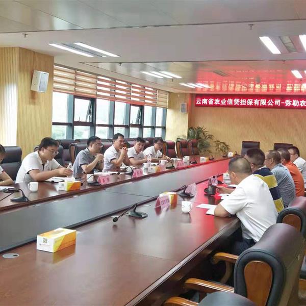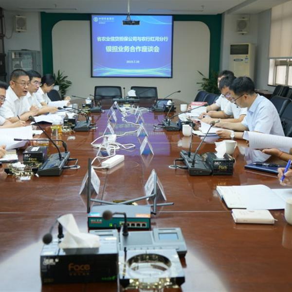 云南農(nóng)擔(dān)董事長郭影攜戰(zhàn)略發(fā)展部負(fù)責(zé)人蔡菲、農(nóng)擔(dān)一部負(fù)責(zé)人劉川、紅河辦事處和彌勒辦事處到中國農(nóng)業(yè)銀行紅河州分行開展業(yè)務(wù)座談
